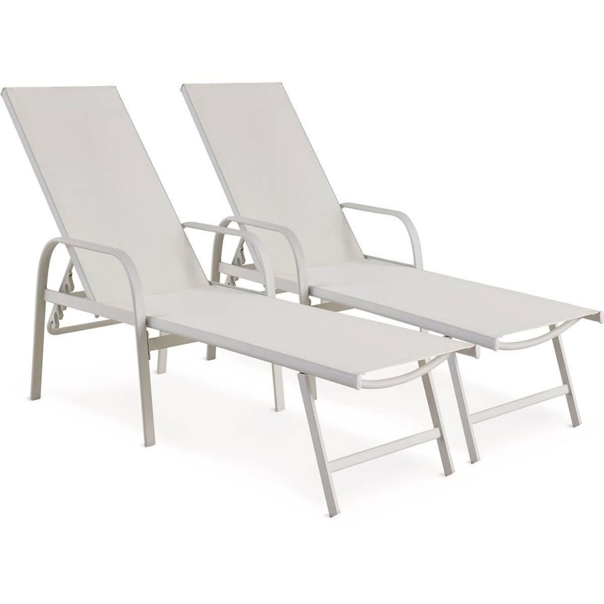 Lot de 2 Bains de soleil en métal avec accoudoirs Farniente - Blanc