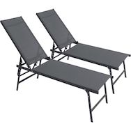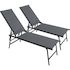 En savoir +Bain de soleil Sublima - Lot de 2 - Dimensions : 180 x 54 x 104 cm - Hauteur réglable : 71.5/ 104 cm - Hauteur d'assise : 34.5 cm - 4 inclinaisons - Métal/textilène - Anthracite.