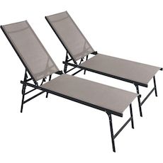 Bain de soleil Sublima - Lot de 2 - Dimensions : 180 x 54 x 104 cm - Hauteur réglable : 71.5/ 104 cm - Hauteur d'assise : 34.5 cm - 4 inclinaisons - Métal/textilène - Taupe.