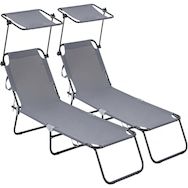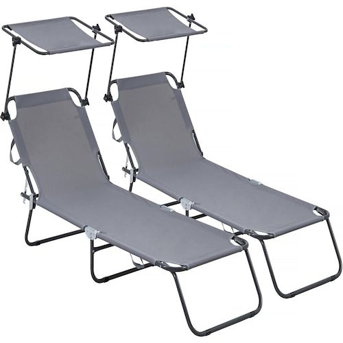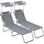 Lot de 2 bains de soleil pliable Lazy - Avec pare soleil - Gris