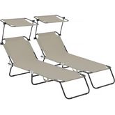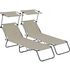 Lot de 2 bains de soleil pliable Lazy - Avec pare soleil - Taupe