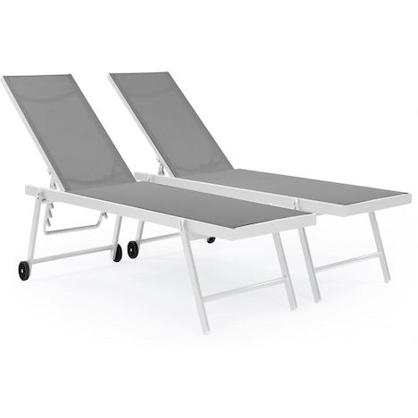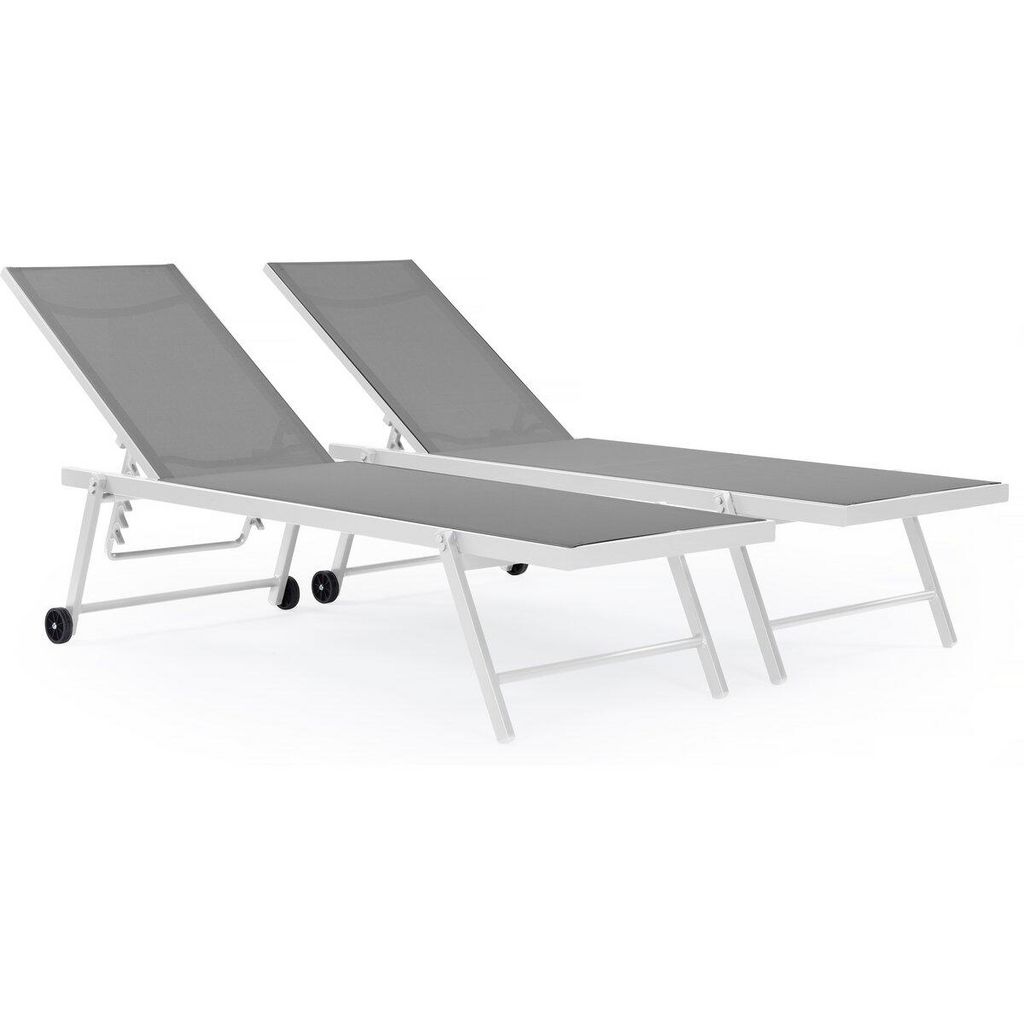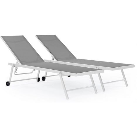 Lot de 2 bains de soleil textilène aluminium Jolia - Gris / Blanc