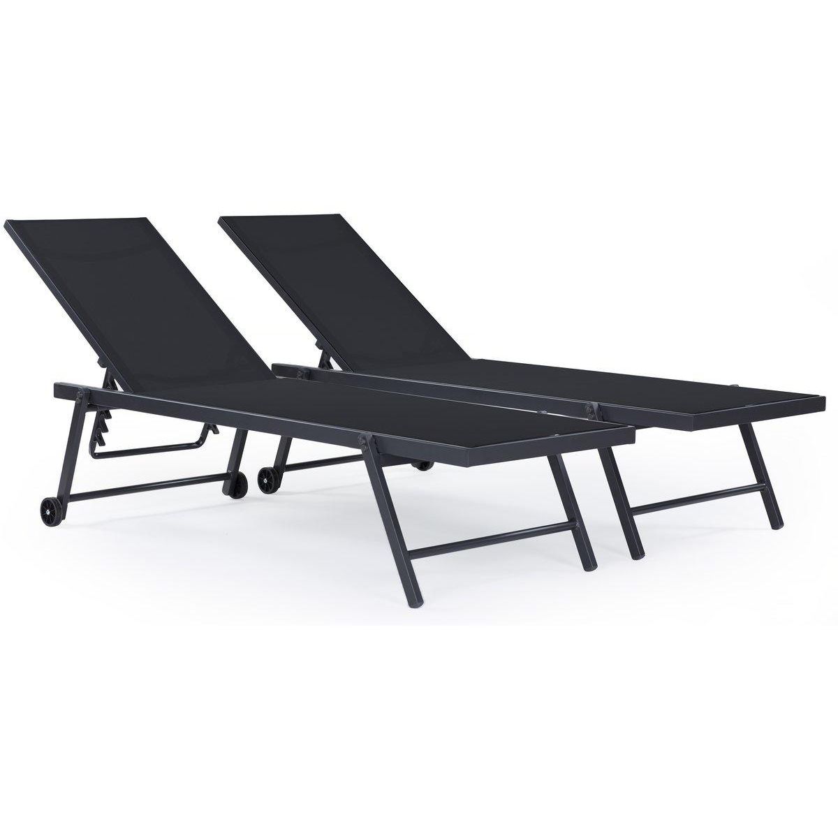 Lot de 2 bains de soleil textilène aluminium Jolia - Gris foncé / Noir
