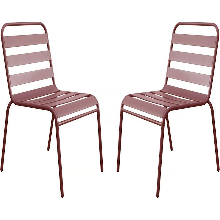 Lot de 2 chaises de jardin en métal empilables Bilbao - Terracotta