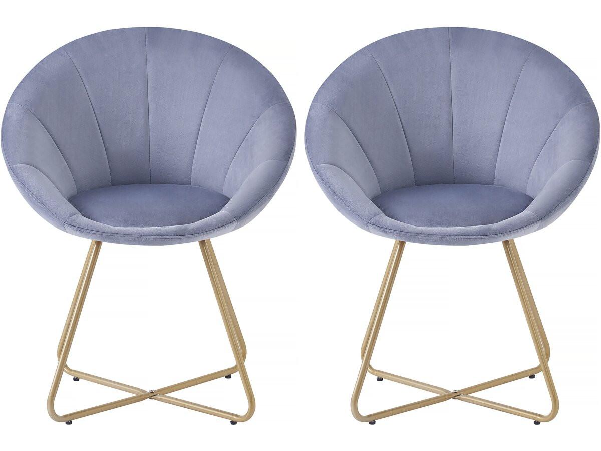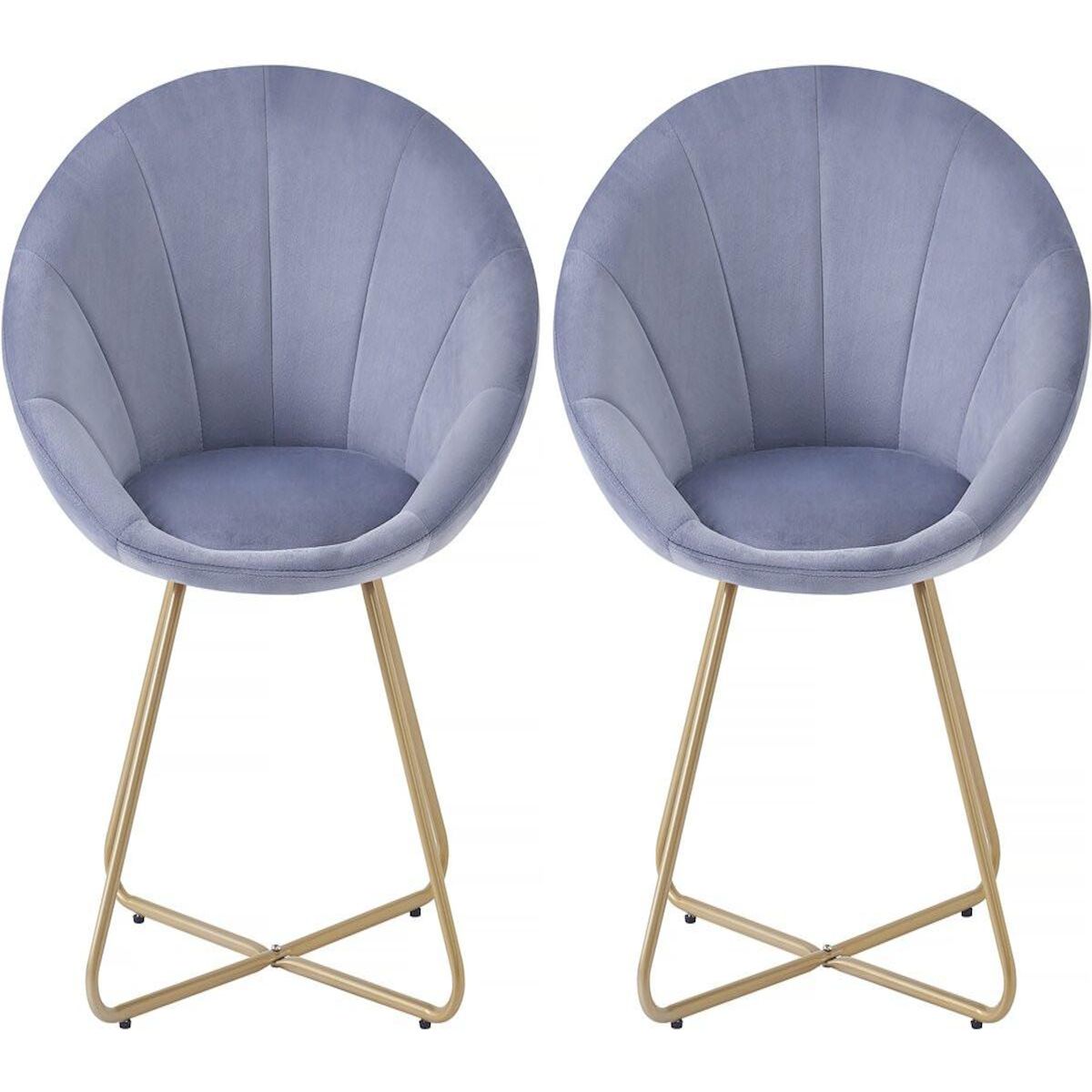 Lot de 2 chaises en velours 'Rosalie' - 62 x 53 x 81 cm- Gris - Cadre métallique en chrome doré