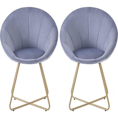Lot de 2 chaises en velours Rosalie - 62 x 53 x 81 cm- Gris - Cadre métallique en chrome doré.