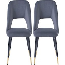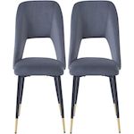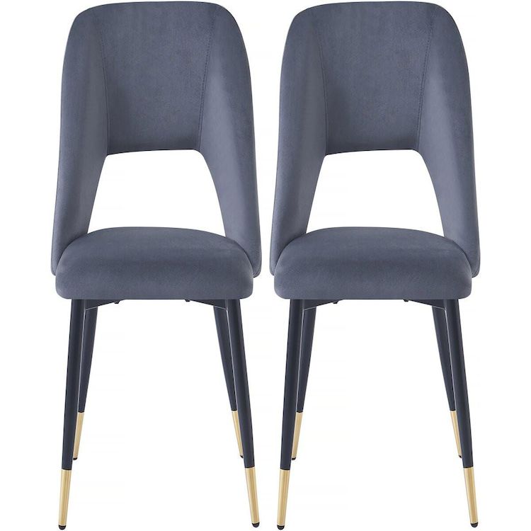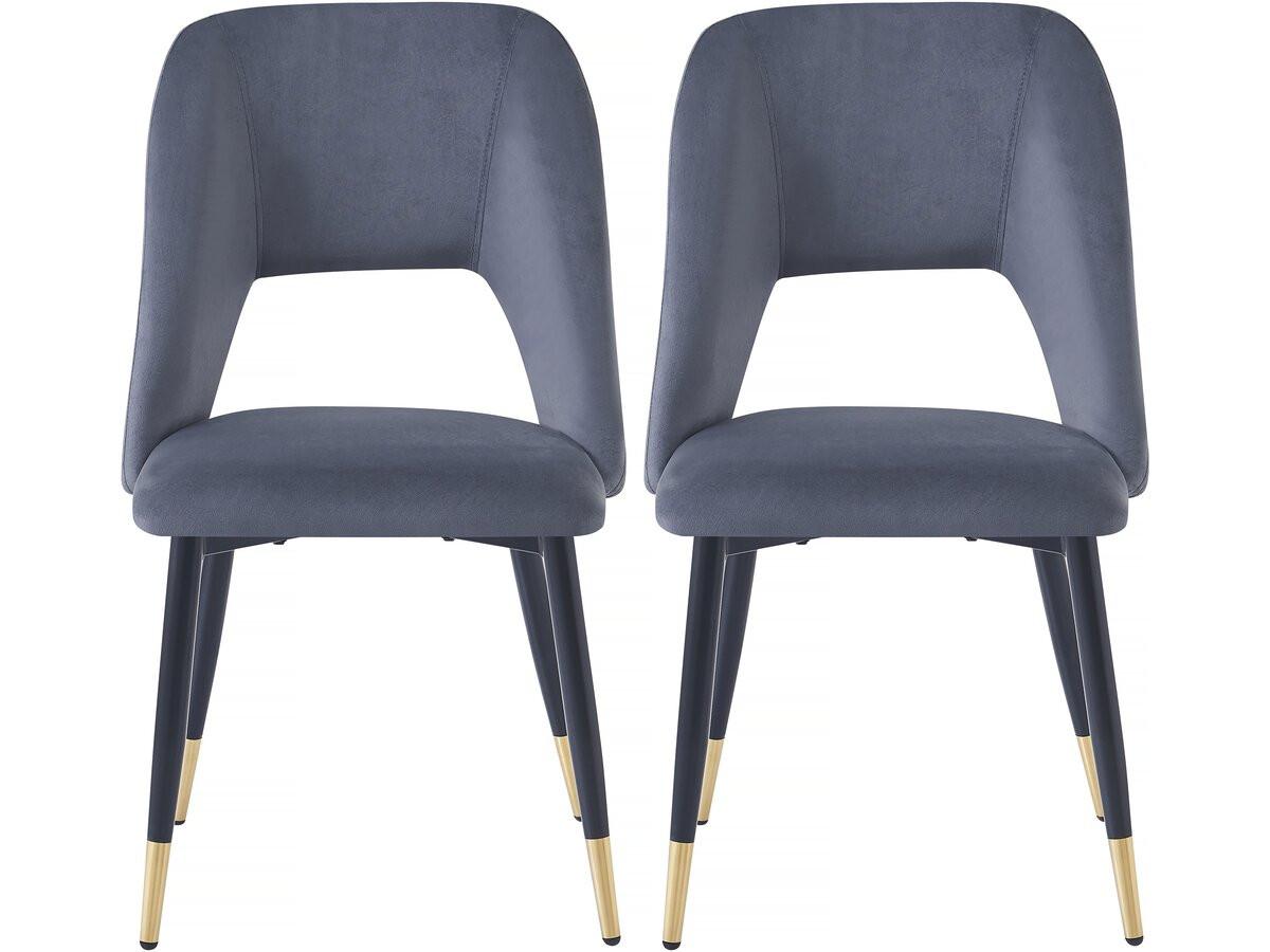 Lot de 2 chaises de salle a manger en velours 'Coralie' - 48 x 55 x 85 cm - Gris - 4 pieds en métal noir et extrémités dorées