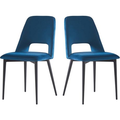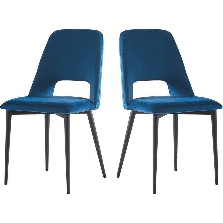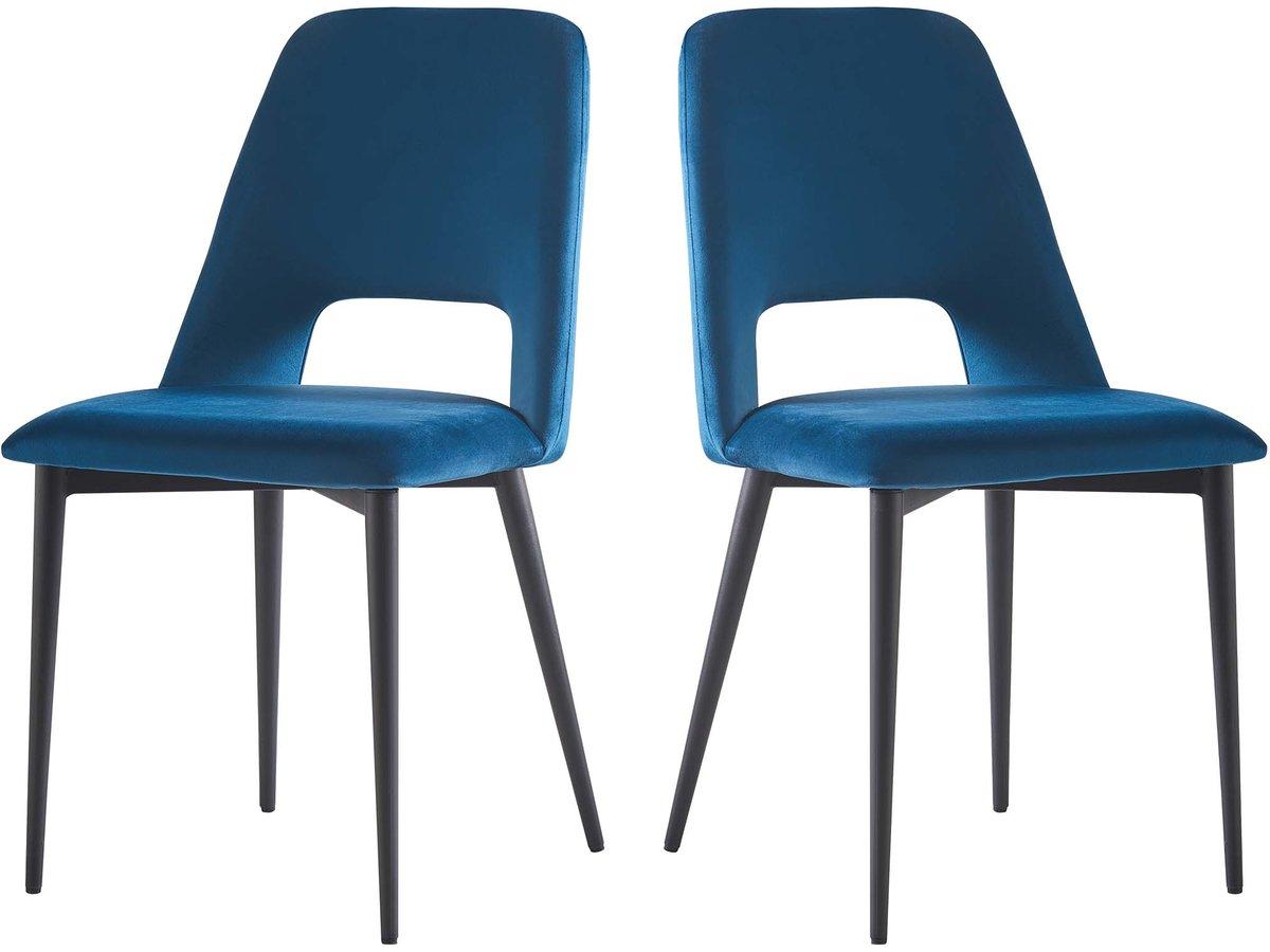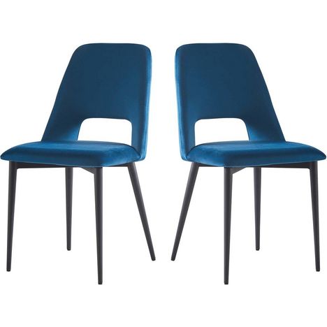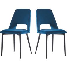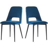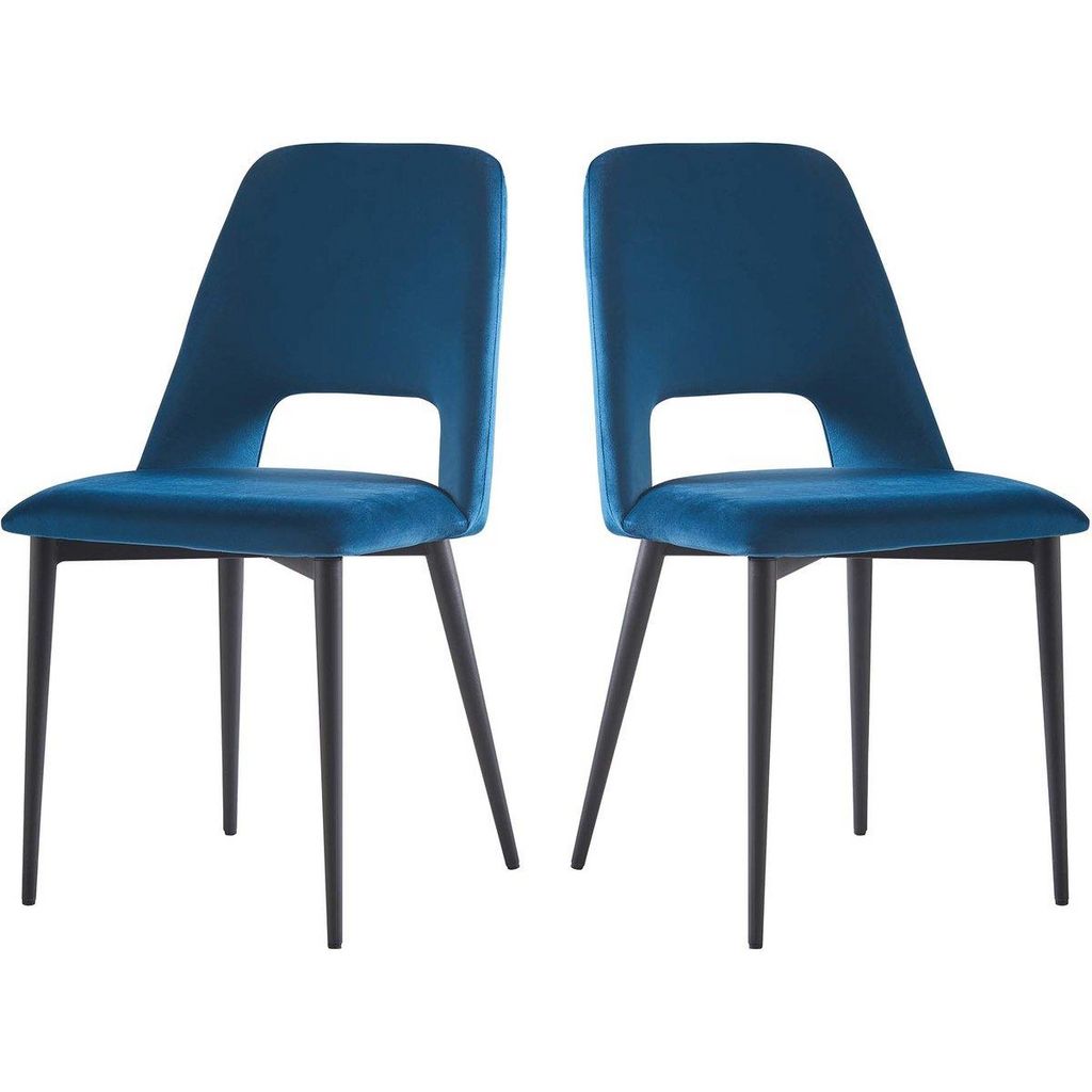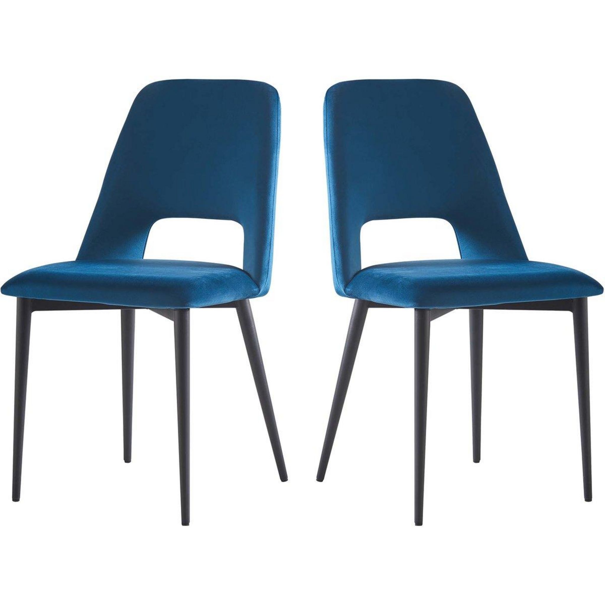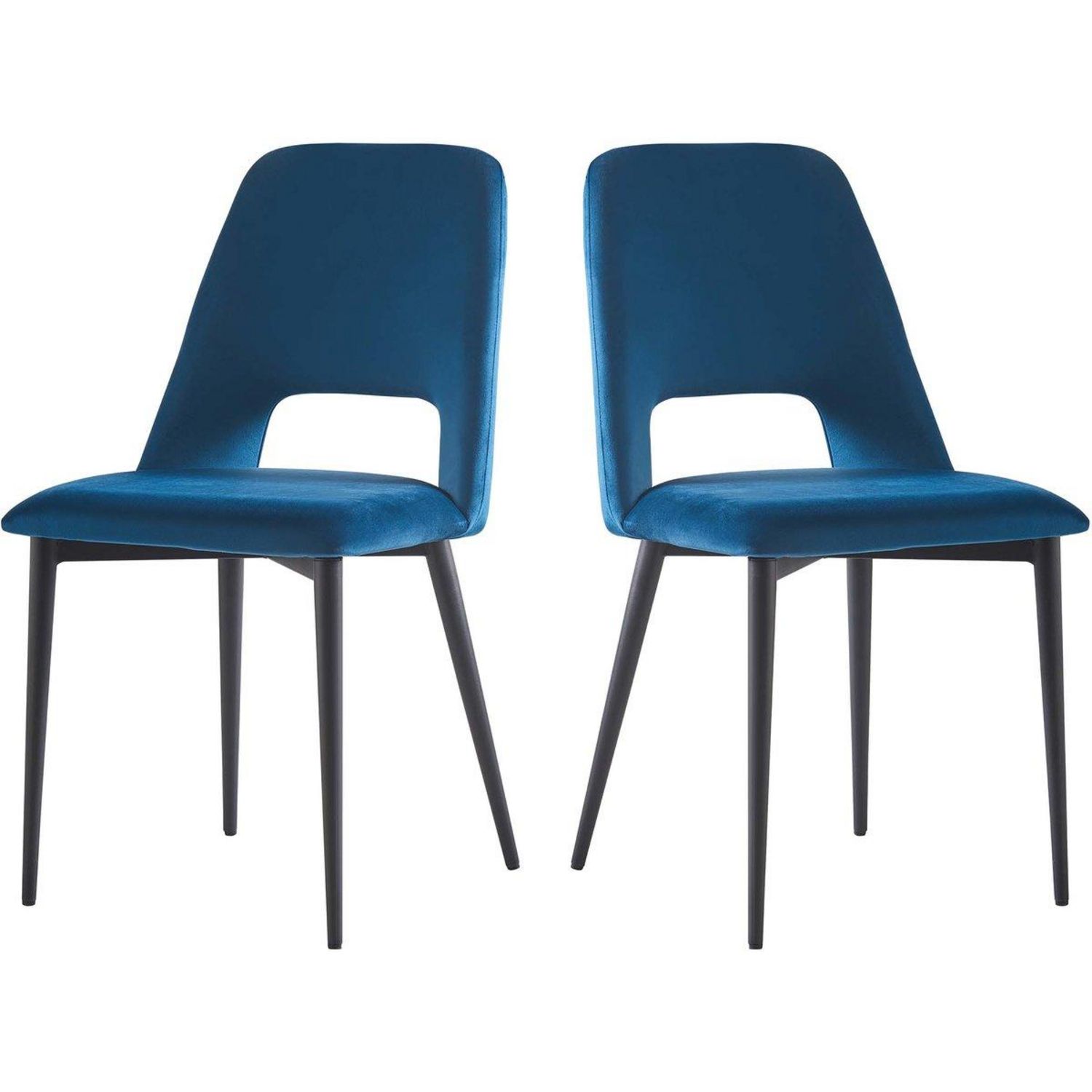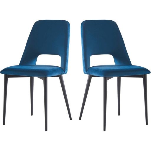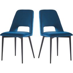 Lot de 2 Chaises en velours 'Fedora' - 45 x 56 x 86 cm - Velours/Bois - Bleu foncé