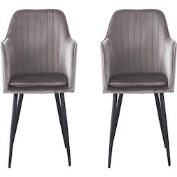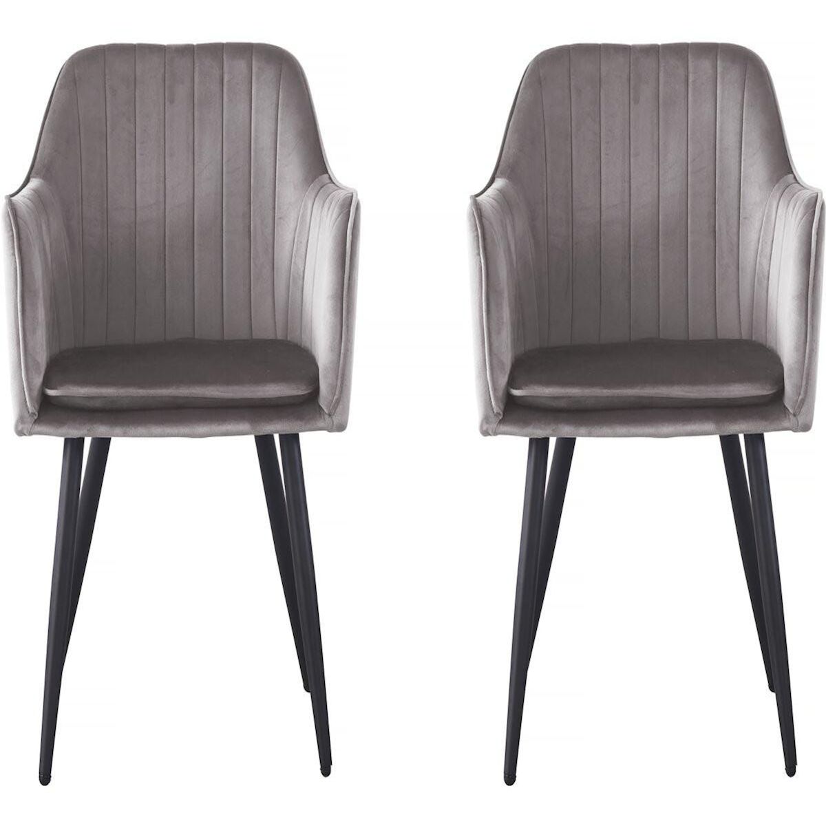 Lot de 2 chaises Velma en velours avec accoudoirs - Gris