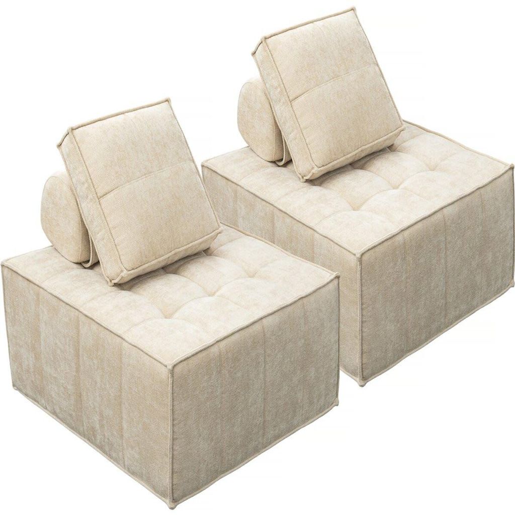 Lot de 2 chauffeuses pour canapé modulables en tissu texturé Velluto - Beige