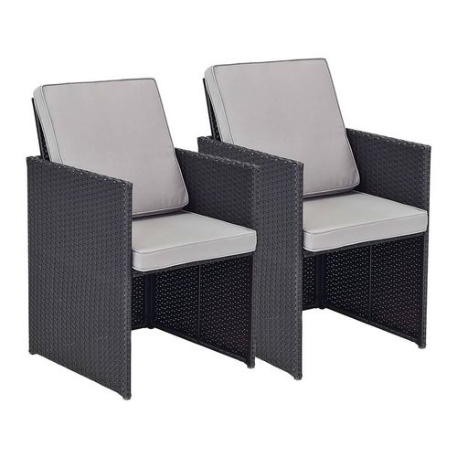 Lot de 2 fauteuils Chicago - Atlanta - Dimensions : 56 x 52 x 87 cm - Résine , Acier - Noir.Lot de 2 fauteuils Chicago Nous vous proposons ce magnifique lot de 2 fauteuils de jardin Chicago. Ses coussins épais assurent un grand confort aux invités, ils sont déhoussables et par la suite faciles