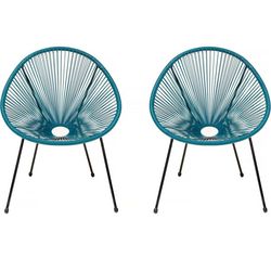 Lot de 2 chaises de jardin style Acapulco Ania - Rotin - Bleu clair.Lot de fauteuils de jardin Ania - Bleu clair La chaise Ania bleu clair offre un design iconique et élégant avec un fil résistant aux intempéries pour une durabilité maximale. Son style rétro et sa couleur vibrante apportent une