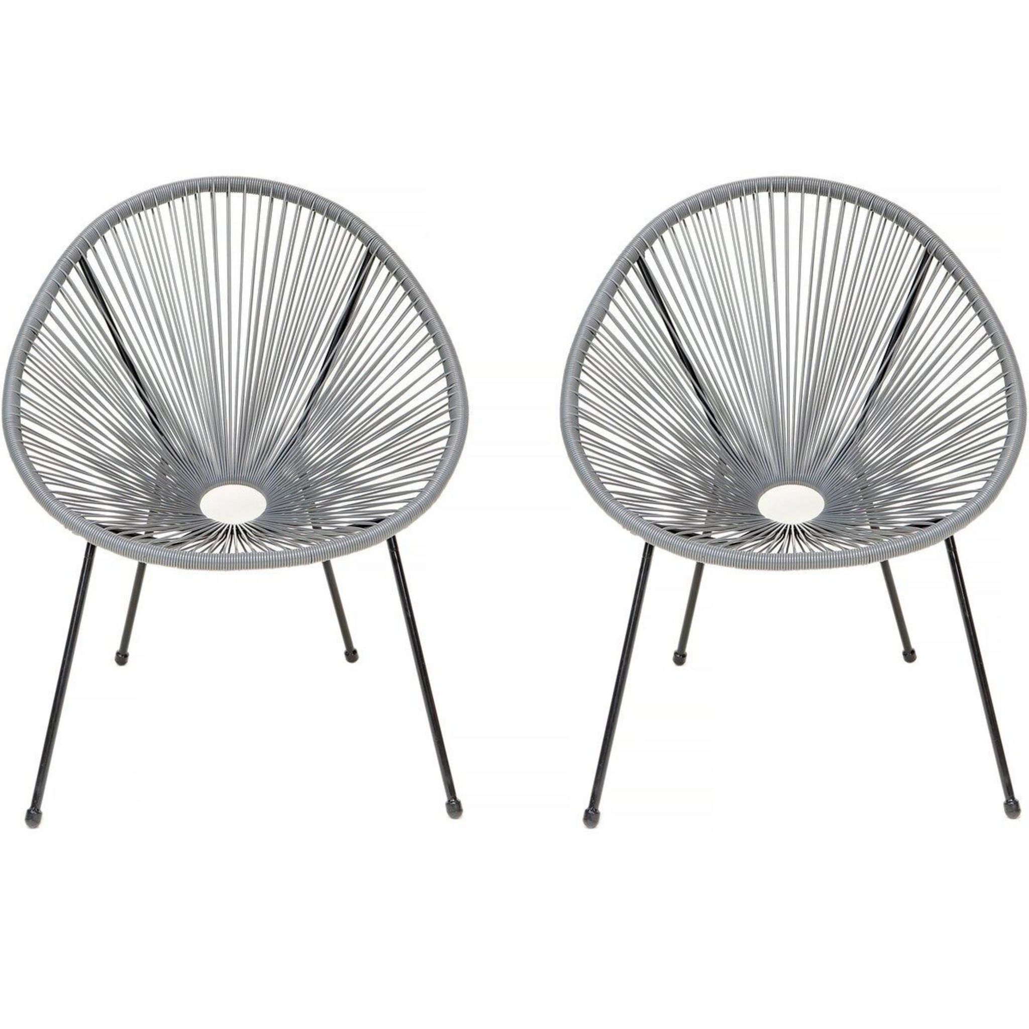 Lot de 2 chaises de jardin style Acapulco Ania - Rotin - Gris.Lot de 2 fauteuils de jardin Ania - Gris La chaise Ania gris offre un design iconique et élégant avec un fil résistant aux intempéries pour une durabilité maximale. Son style rétro et sa couleur vibrante apportent une touche de fraîc