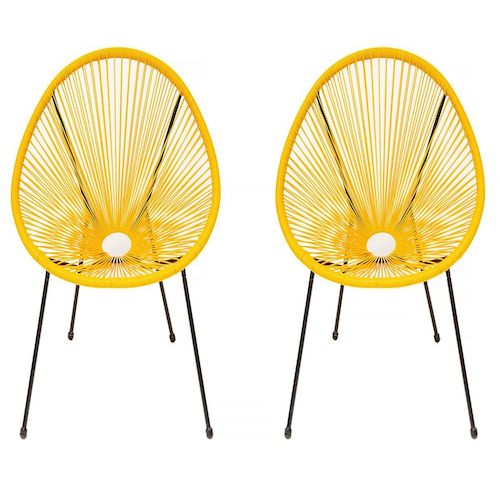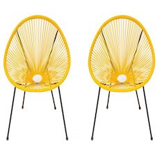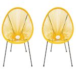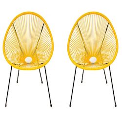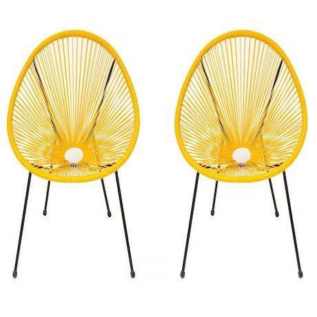 Lot de 2 chaises de jardin style Acapulco Ania - Rotin - Osier - Jaune.Lot de 2 fauteuils de jardin Ania - JauneLa chaise Ania jaune offre un design iconique et élégant avec un fil résistant aux intempéries pour une durabilité maximale. Son style rétro et sa couleur vibrante apportent une touch