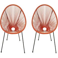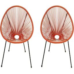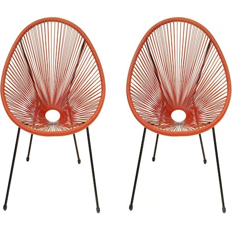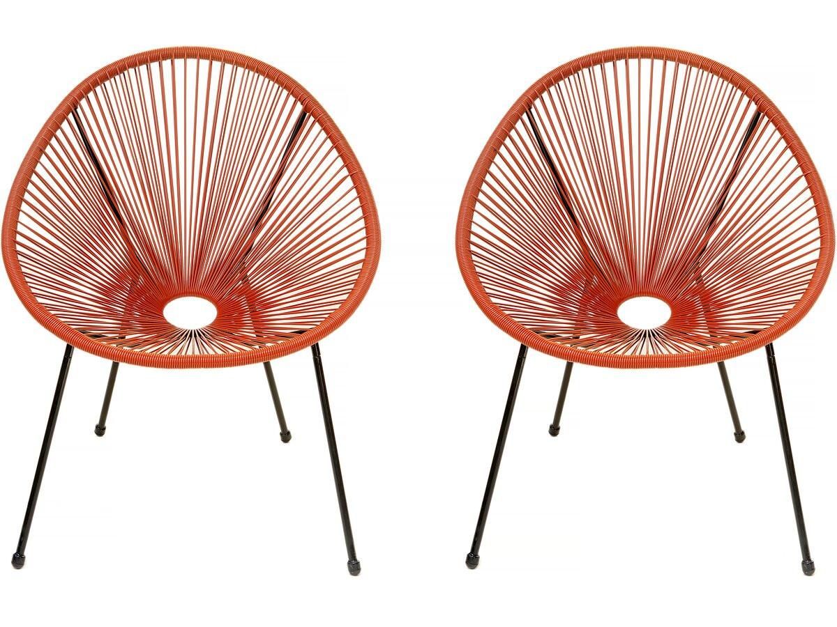Lot de 2 chaises de jardin style Acapulco Ania - Rotin - Rouge.Lot de 2 fauteuils de jardin Ania - Rouge La chaise Ania rouge offre un design iconique et élégant avec un fil résistant aux intempéries pour une durabilité maximale. Son style rétro et sa couleur vibrante apportent une touche de fra