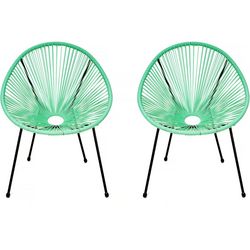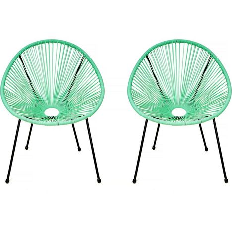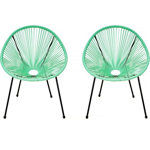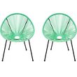 Lot de 2 chaises de jardin style Acapulco Ania - Rotin - Vert.Lot de 2 fauteuils de jardin Ania - Vert La chaise Acapulco vert offre un design iconique et élégant avec un fil résistant aux intempéries pour une durabilité maximale. Son style rétro et sa couleur vibrante apportent une touche de f