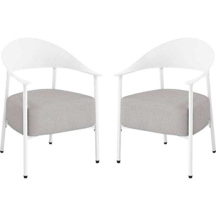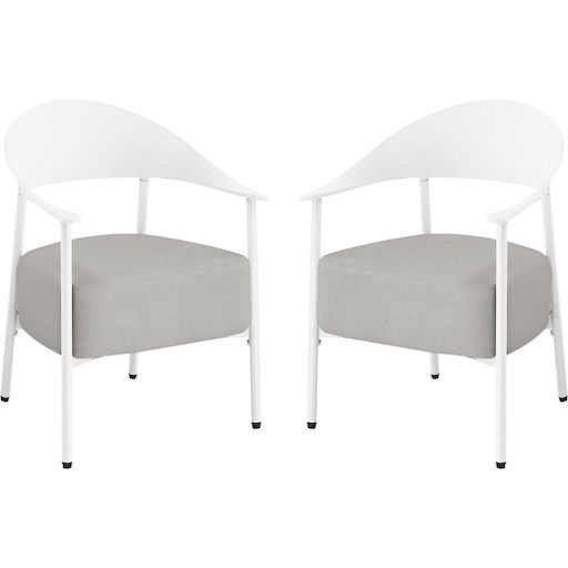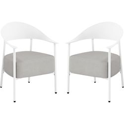 Apportez une note d'élégance et de confort à votre espace extérieur avec ce lot de 2 fauteuils de jardin au design contemporain. Conçus avec une structure en plastique résistante, ces fauteuils allient légèreté, solidité et facilité d'entretien, parfaits pour une utilisation en terrasse, balcon ou jardin. Leur silhouette enveloppante avec accoudoirs intégrés offre un excellent maintien, tandis que l'assise large invite à la détente.Les coussins en tissu, garnis d'une mousse épaisse haute densité, assurent un confort d'assise optimal même pendant de longues heures. Déhoussables pour un entretien simplifié, ils résistent à un usage extérieur tout en conservant leur tenue et leur moelleux. Faciles à déplacer grâce à leur poids léger, ces fauteuils permettent d'aménager un espace lounge chaleureux et moderne selon vos envies.Idéal pour créer un coin détente chic et convivial, ce lot de fauteuils s'intègre harmonieusement à tout type de décoration extérieure, alliant esthétisme, praticité et bien-être au quotidien.Lot de 2 fauteuils de jardin en plastique Céora - Dimensions: 69 x 73 x 76 cm - Poids: 9,5 kg - Blanc .Couleurs: blanc
