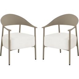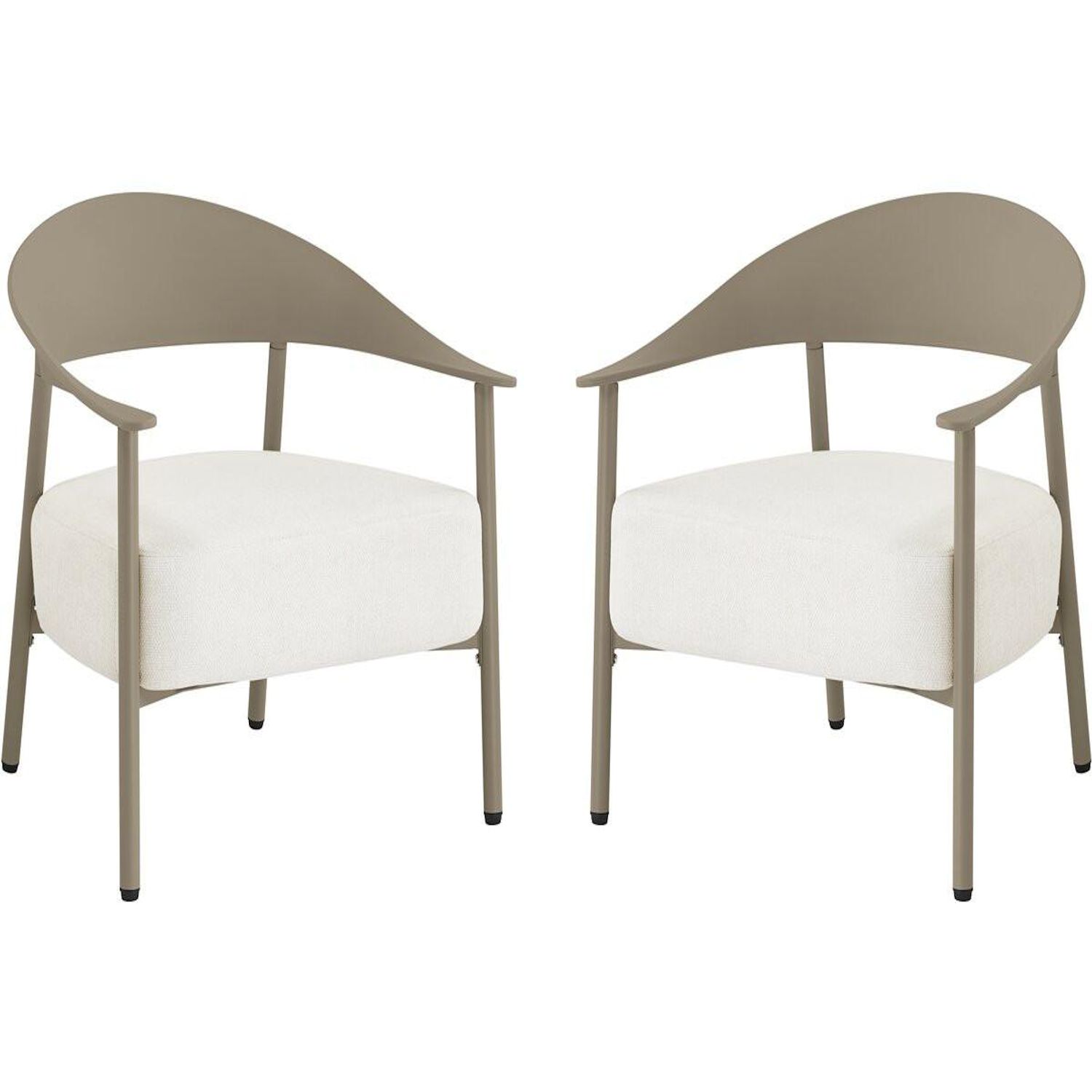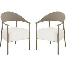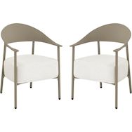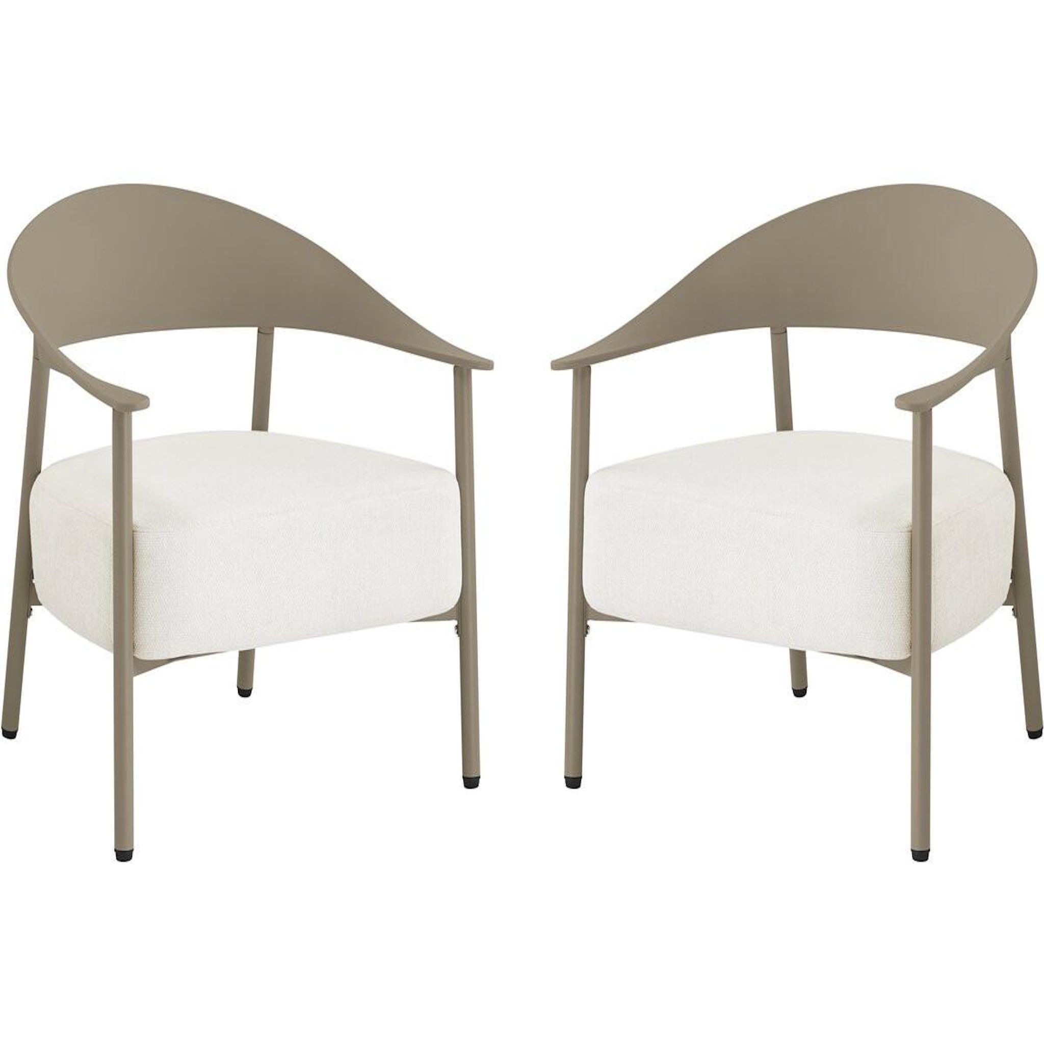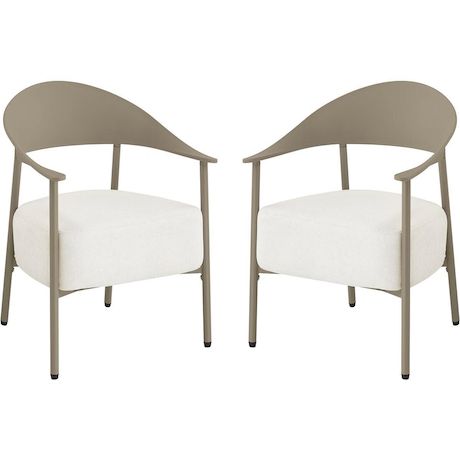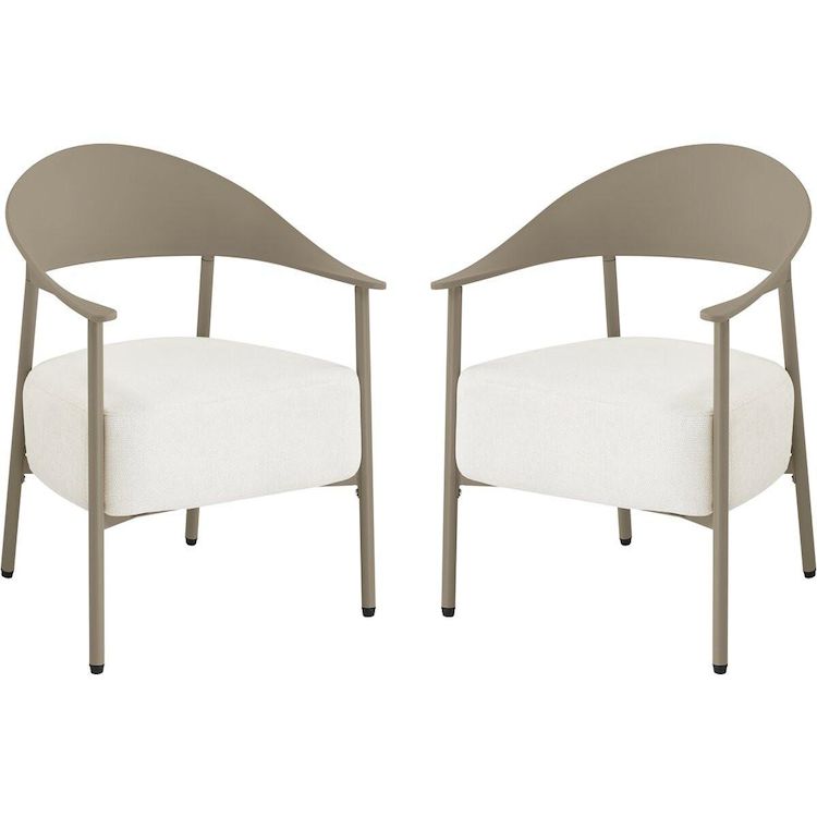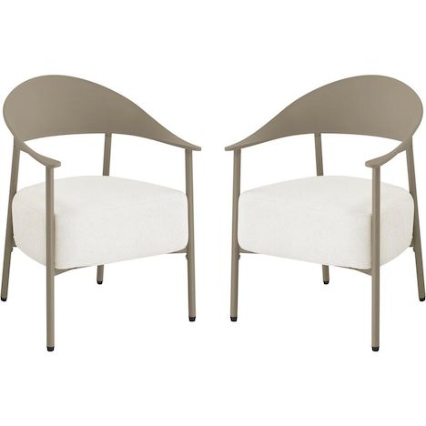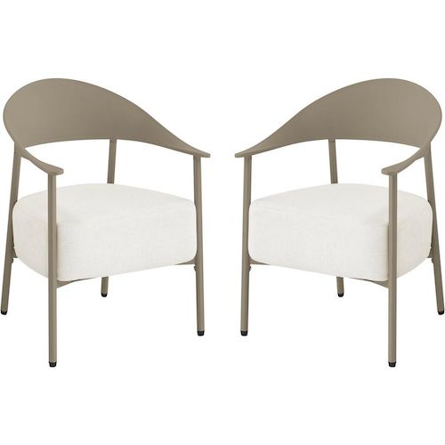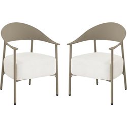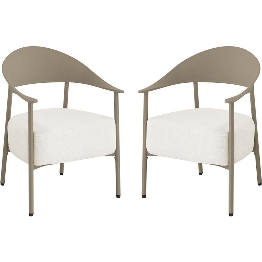 Apportez une note d'élégance et de confort à votre espace extérieur avec ce lot de 2 fauteuils de jardin au design contemporain. Conçus avec une structure en métal et dossier en plastique ultra tendance, ces fauteuils allient légèreté, solidité et facilité d'entretien, parfaits pour une utilisation en terrasse, balcon ou jardin. Leur silhouette enveloppante avec accoudoirs intégrés offre un excellent maintien, tandis que l'assise large invite à la détente.Les coussins en tissu, garnis d'une mousse épaisse haute densité, assurent un confort d'assise optimal même pendant de longues heures. Déhoussables pour un entretien simplifié, ils résistent à un usage extérieur tout en conservant leur tenue et leur moelleux. Faciles à déplacer grâce à leur poids léger, ces fauteuils permettent d'aménager un espace lounge chaleureux et moderne selon vos envies.Idéal pour créer un coin détente chic et convivial, ce lot de fauteuils s'intègre harmonieusement à tout type de décoration extérieure, alliant esthétisme, praticité et bien-être au quotidien. Ensemble de 2 fauteuils de jardin Céora - 2 places - Dimensions fauteuil: 69 x 73 x 76 cm - Assise en mousse épaisse 16 cm - Structure en métal et dossier en plastique .Couleurs: Taupe