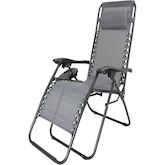 Lot de 2 chaises de jardin avec porte gobelet Sintra - Dimensions 160 x 64 x 109 cm - Taupe - Coussin matelassé inclus - 180g polyester - Dimensions du coussin : 164 x 52 x 10 cm - Fonction relax.Lot de 2 fauteuils de jardin inclinable zéro gravité avec coussin matelassé Sintra - Taupe Ce lot de