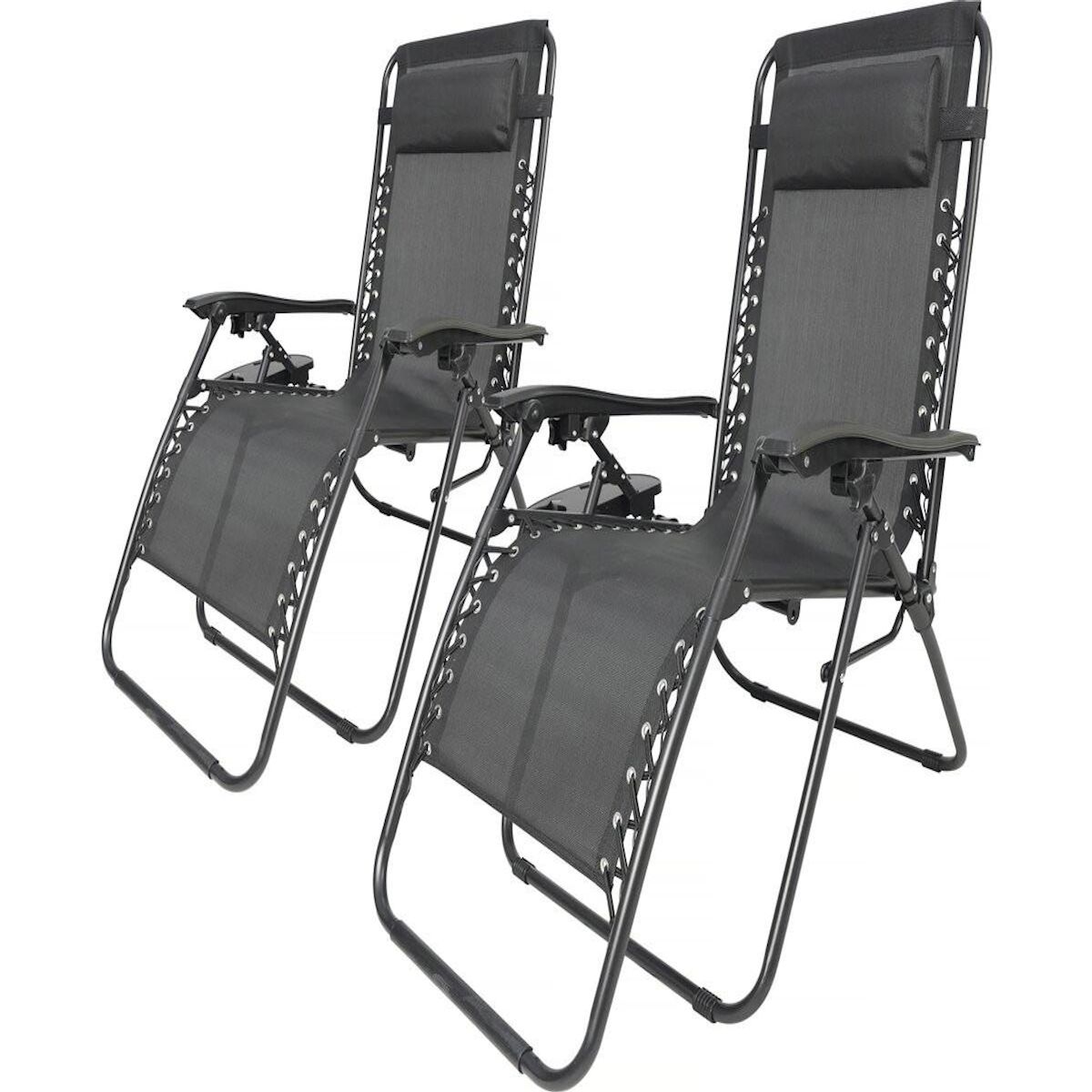 Lot de 2 Fauteuils de jardin inclinable zéro gravité Sintra - Noir