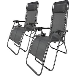 Lot de 2 Chaises longues de jardin relax zero gravity avec porte gobelet Sintra - Dimensions 160 x 64 x 109 cm - Noir.Lot de 2 Fauteuils de jardin inclinable zéro gravité Sintra - NoirProfitez d'un confort inégalé avec notre fauteuil de jardin relax zéro gravité. Parfait pour vos moments de déte