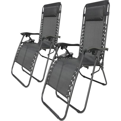 Lot de 2 Chaises longues de jardin relax zero gravity avec porte gobelet Sintra - Dimensions 160 x 64 x 109 cm - Noir.