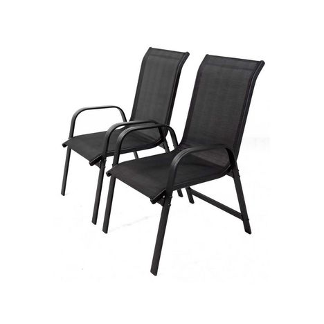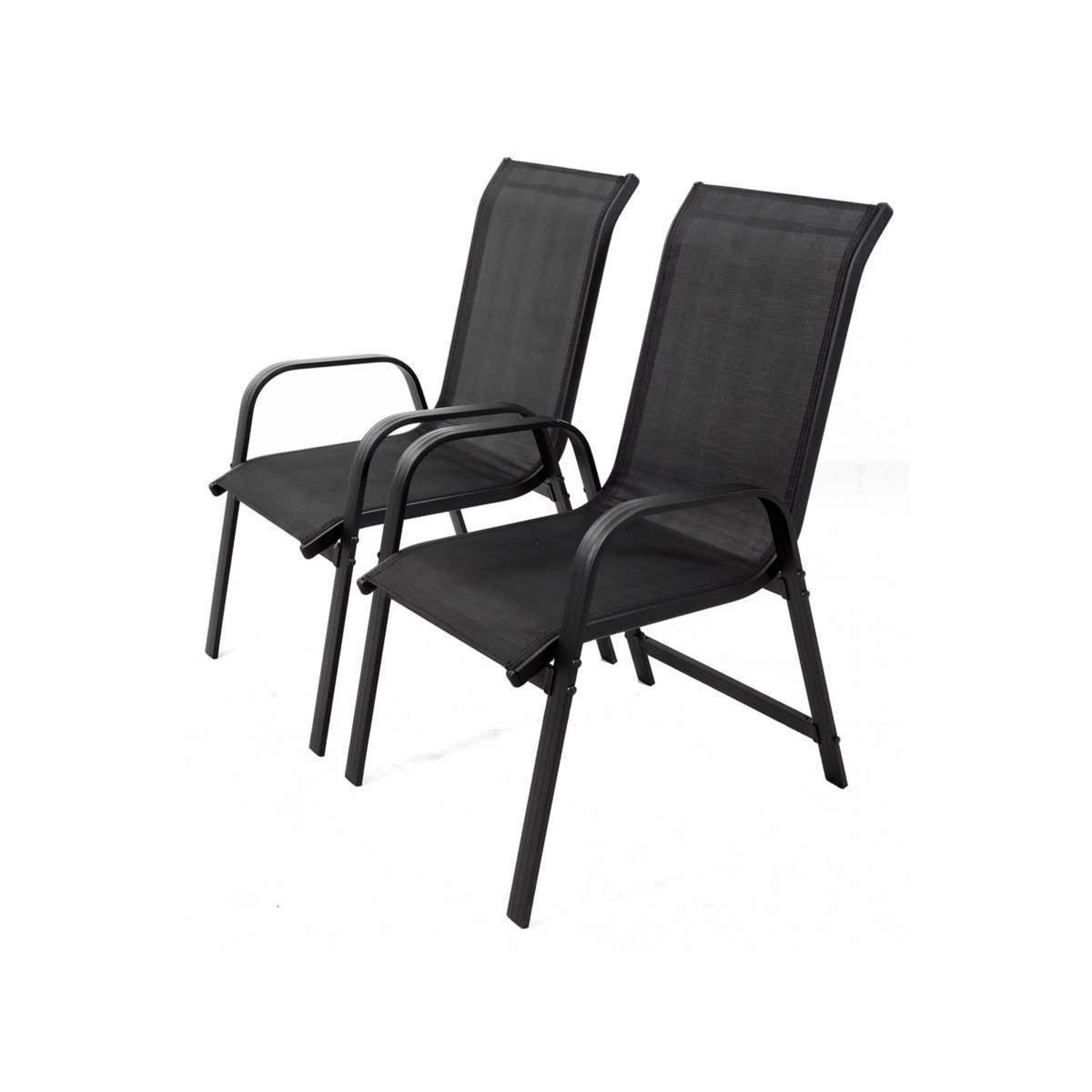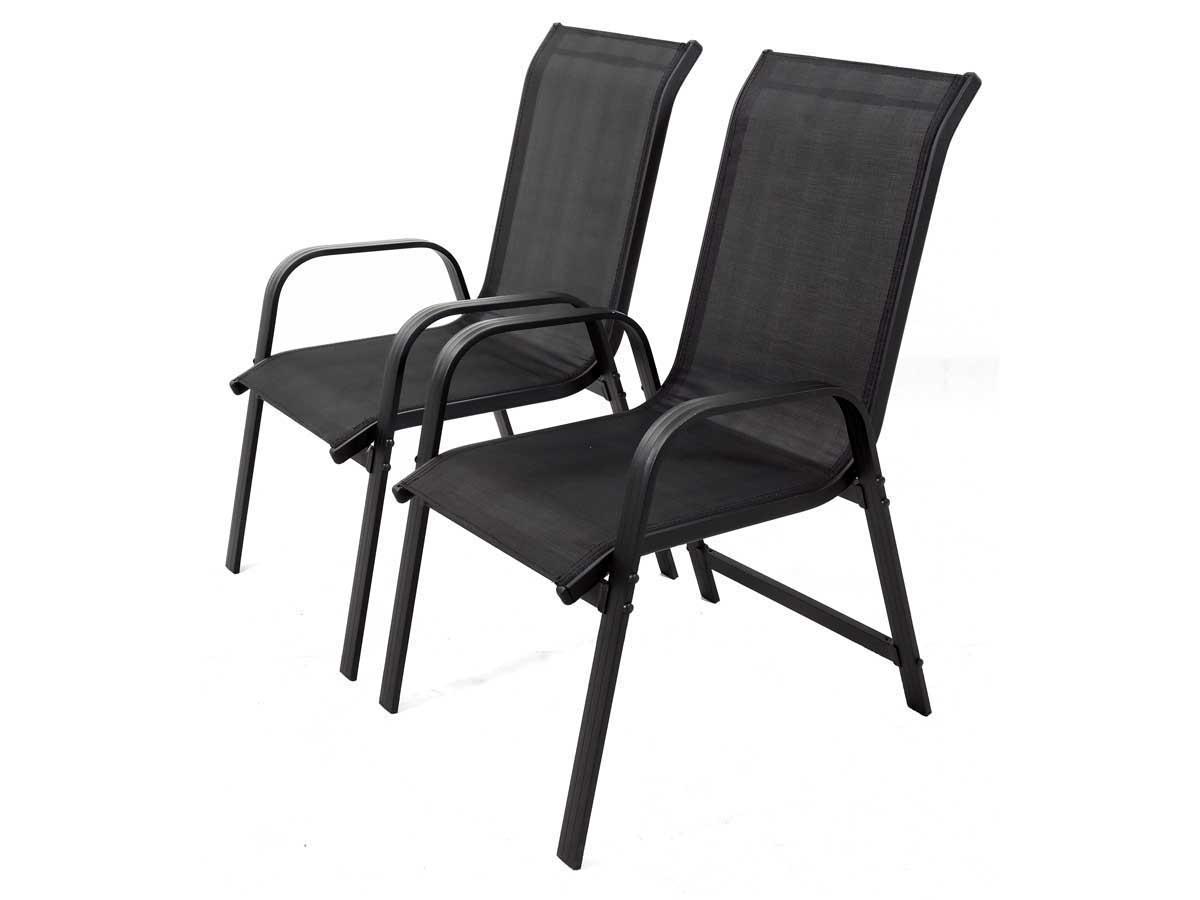 Lot de 2 fauteuils de jardin Porto - Un confort agréable et recherché - 75.5 x 55.5 x 99 cm - Coloris structure et textile : Noir - Chaises non empilables.Lot de 2 fauteuils de jardin Porto Lot de 2 fauteuils de jardin - Un style aux formes élégantes - Structure solide et légère - Compatibilité