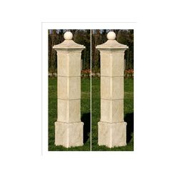 Lot de 2 piliers de portail Provençal - 41 x 41 x 228 cm - 1 base, de 3 boisseaux - 1 chapeau boule en 3 parties (chapiteau + pyramide + boule)..
