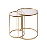 Ensemble de tables basses en métal Aurum - Grande table : 60 x 60 x 43 cm - Petite table : 42 x 42 x 39 cm - Or Transparent Conçu pour offrir praticité et robustesse, ce modèle s'intègre facilement dans tout intérieur et répond aux besoins du quotidien en garantissant confort d'usage..Ensemble de
