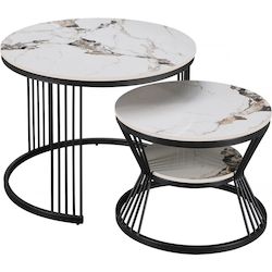 Tables basses gigognes Ombre - Lot de 2 - Dimensions grande table basse : 70 x 70 x 45 cm - Dimensions petite table basse : 60 x 60 x 35 cm - Plateau en céramique - Epaisseur du plateau : 1 cm - Effet marbré - Blanc.
