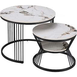Les plus produits: Lot de 2 tables gigognes Effet marbré Design élégant Gain de place