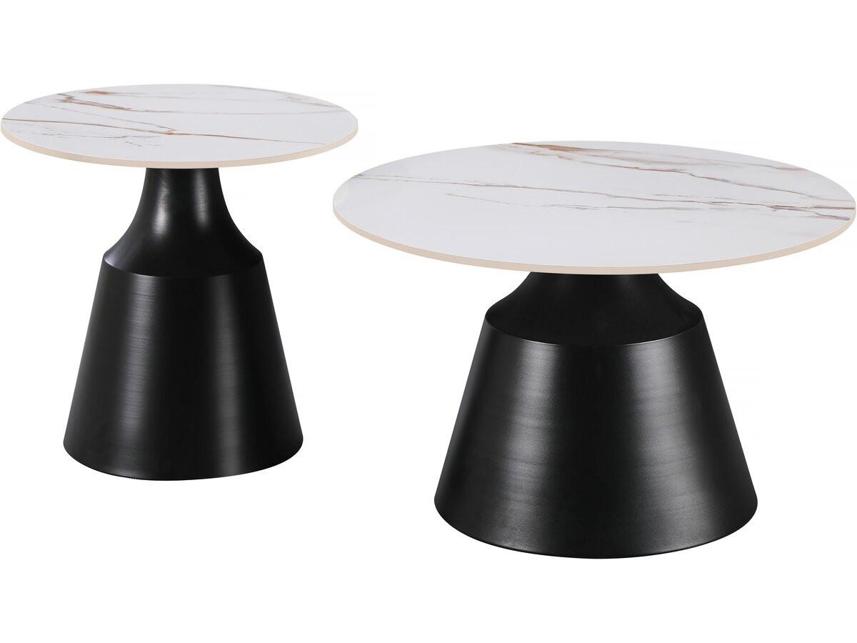Tables basses gigognes Vulca - Lot de 2 - Dimensions grande table basse : 70 x 70 x 43 cm - Dimensions petite table basse : 50 x 50 x 48 cm - Plateau en céramique - Epaisseur du plateau : 1 cm - Effet marbré - Blanc.Lot de 2 tables basses gigognes en céramique Vulca - 70 x 70 x 43 cm - Blanc App