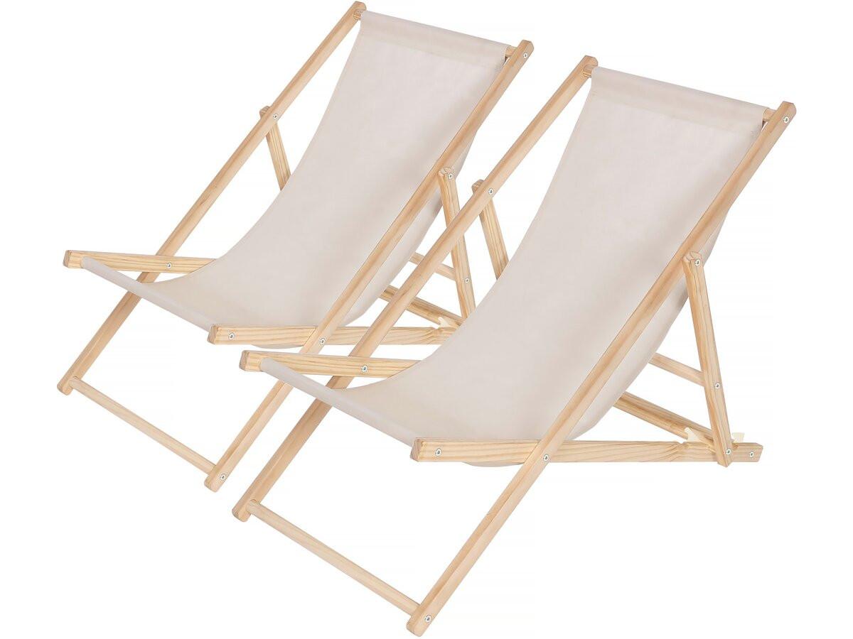 Lot de 2 transats en bois Chilienne - 107 x 56.5 x 81 cm - Ecru