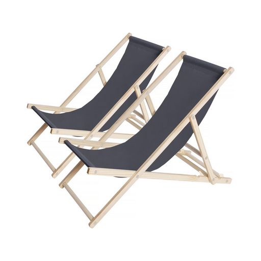 Lot de 2 transats en bois Chilienne - Dimensions : L107 x l56.5 x H81 cm - Matières : Tissu Oxford 420D - Couleur : Gris.