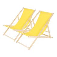 Lot de 2 transats en bois Chilienne - Dimensions : L107 x l56.5 x H81 cm - Matières : Tissu Oxford 420D - Couleur : Jaune.