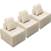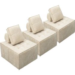 Lot de 3 chauffeuses pour canapé modulables en tissu texturé Velluto - Beige