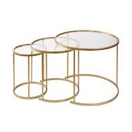 Ensemble de tables basses en métal Aurum - Grande table : 80 x 80 x 43 cm - Moyenne table : 60 x 60 x 38 cm - Petite table : 42 x 42 x 39 cm - Or Transparent Conçu pour offrir praticité et robustesse, ce modèle s'intègre facilement dans tout intérieur et répond aux besoins du quotidien en garantissant confort d'usage. .Matières: Metal