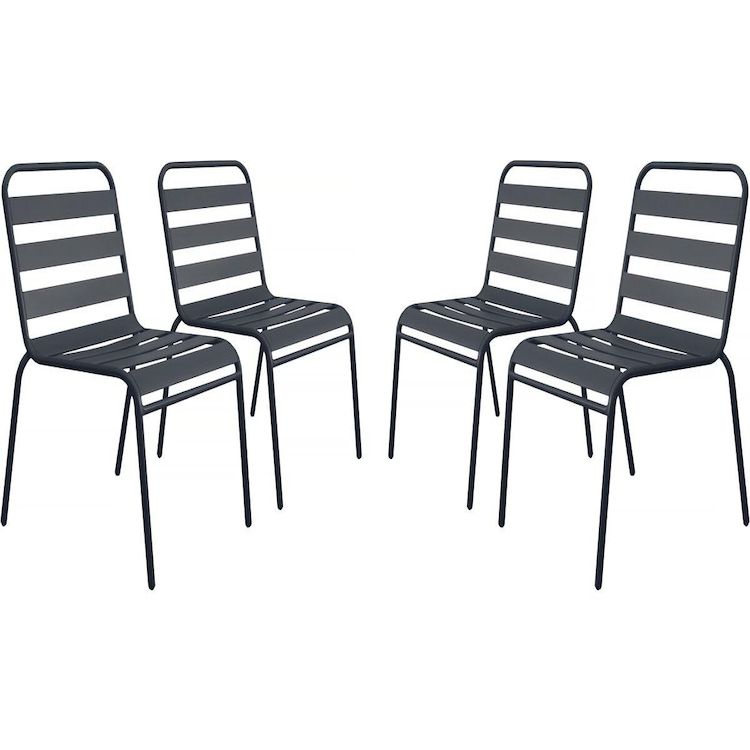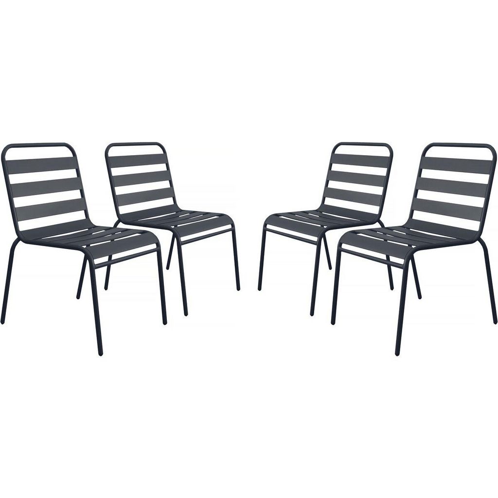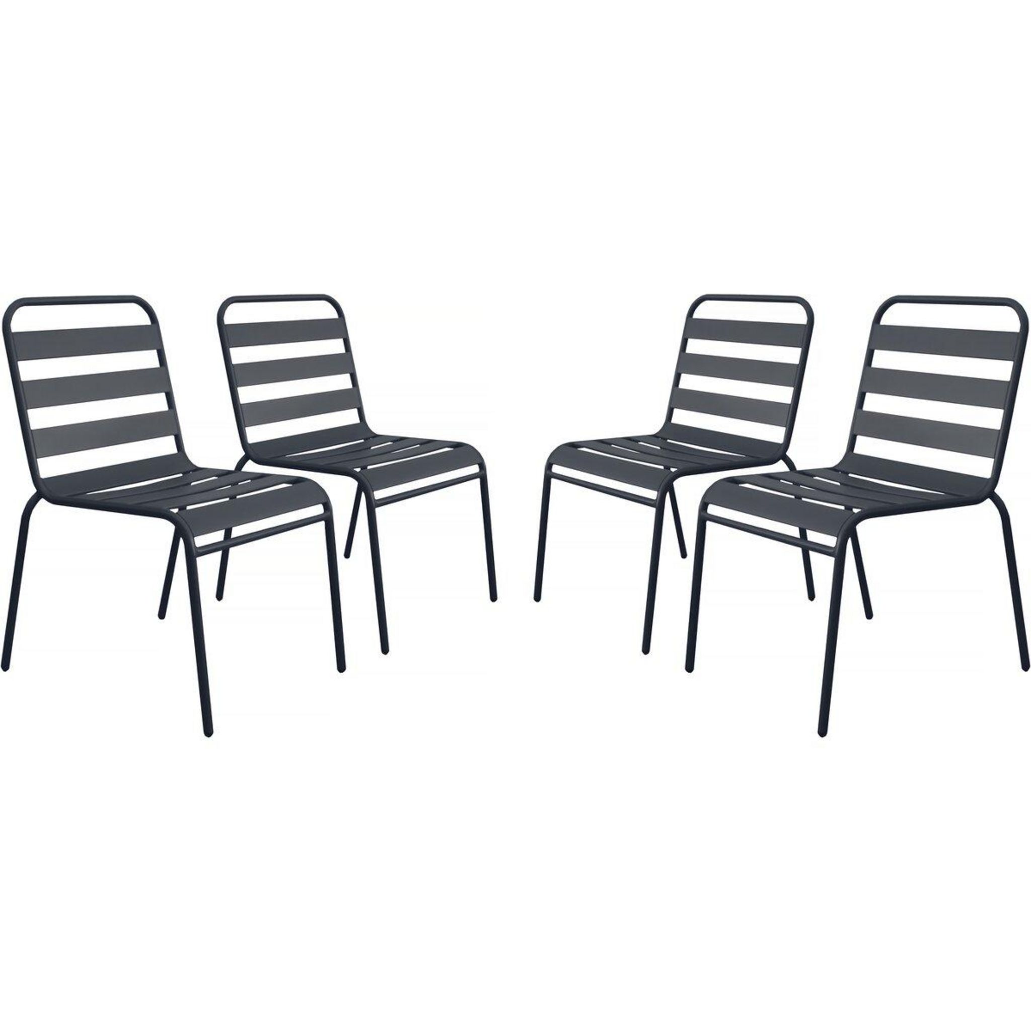 Lot de 4 chaises de jardin en métal empilables Bilbao - Gris