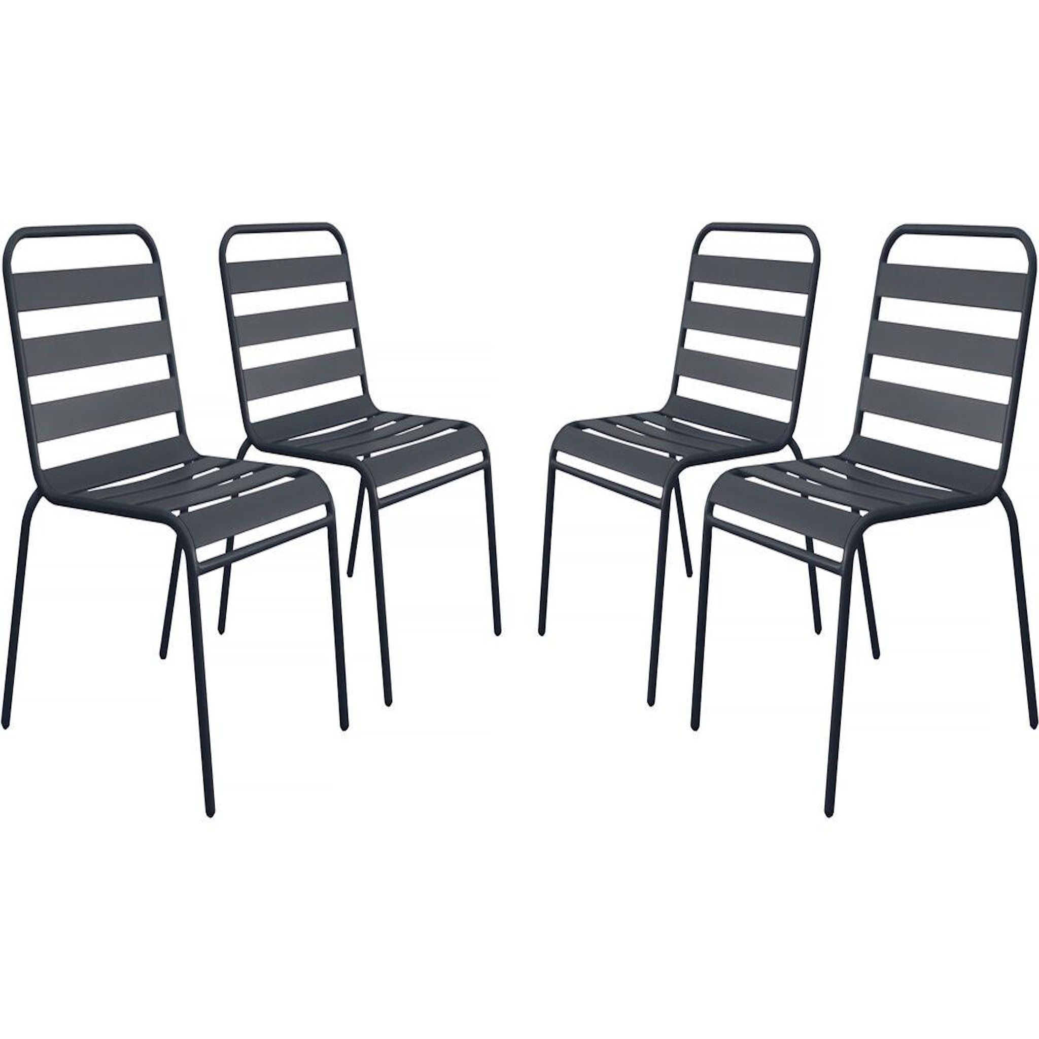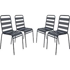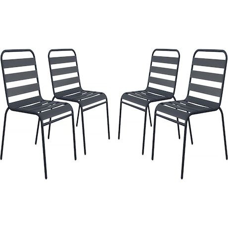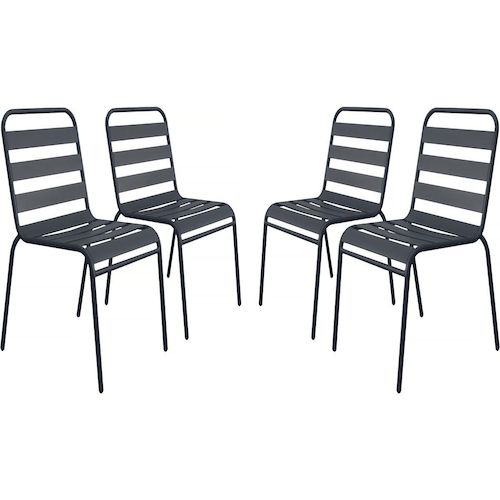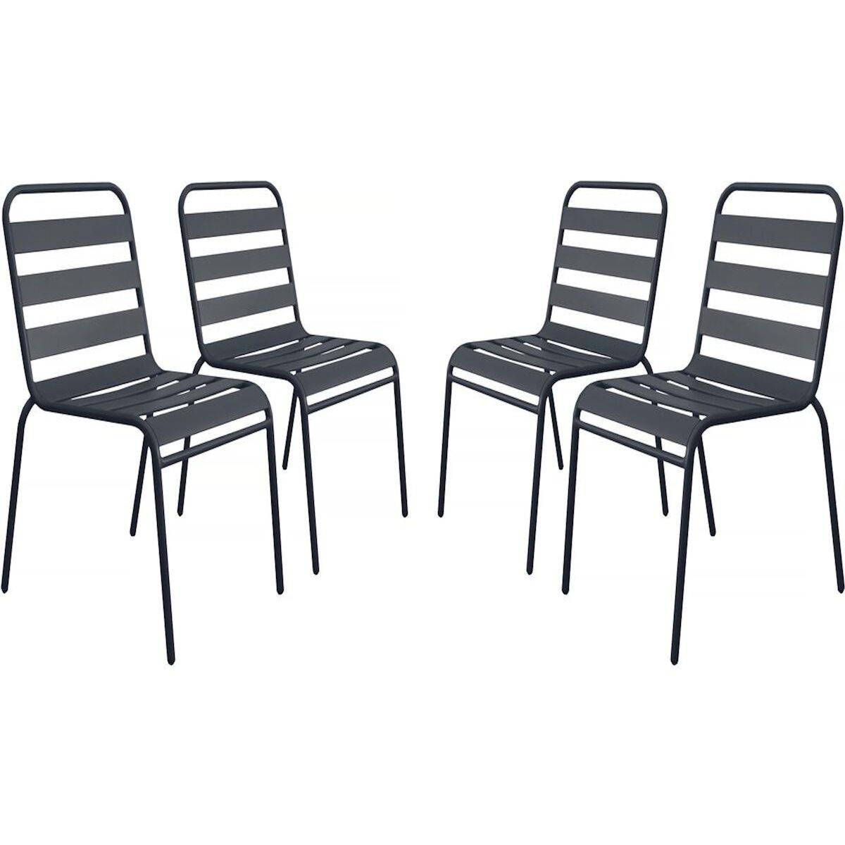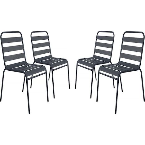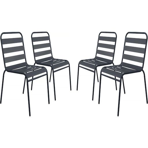 Lot de 4 chaises de jardin en métal empilables Bilbao - GrisCe lot de 4 chaises d'extérieur Bilbao est idéal pour aménager un coin détente en extérieur. Avec ses dimensions généreuses, 59 x 55 x 84 cm, elles offrent une assise confortable pour vos moments de relaxation en terrasse, jardin ou balcon. Parfaitement adaptée pour les repas en extérieur ou les moments conviviaux entre amis, cette chaise se distingue par sa leur design épuré et leur robustesse.Conçues en métal de haute qualité, les chaises Bilbao garantissent une grande solidité ainsi qu'une excellente résistance aux intempéries, vous permettant de les laisser en extérieur toute l'année.Leur coloris gris s'adapte facilement à tous les types de décor, que ce soit dans un jardin, sur une terrasse ou un balcon. Alliant confort, robustesse et simplicité, les chaises Bilbao sont le choix parfait pour profiter pleinement de vos moments de détente en plein air.Achetez ce lot de 4 chaises Bilbao dès aujourd'hui et profitez pleinement de votre espace extérieur. Fauteuil chaise bistrot de jardin empilable en métal Bilbao - Lot de 4 - Dimensions : 59 x 55 x 84 cm - Dimensions de l'assise : 40 x 48.5 x 43,5 cm - Gris .Descriptif: Fauteuil chaise bistrot de jardin empilable en métal Bilbao - Lot de 4 - Dimensions : 59 x 55 x 84 cm - Dimensions de l'assise : 40 x 48.5 x 43,5 cm - Gris