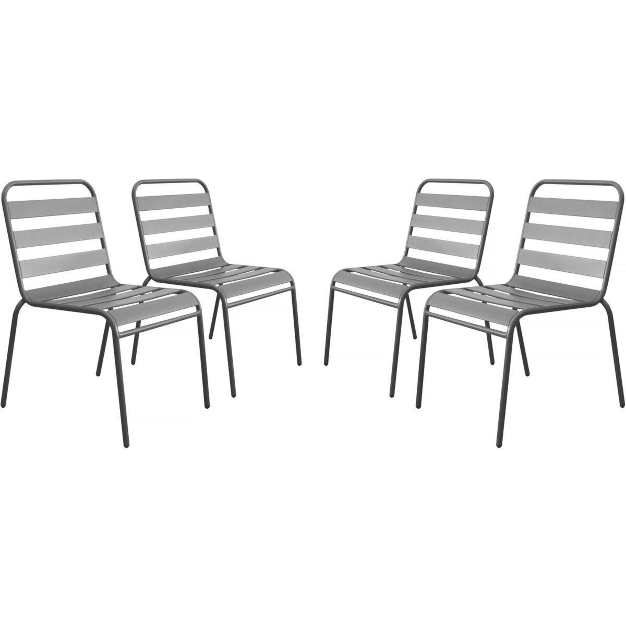 Lot de 4 chaises de jardin en métal empilables Bilbao - Taupe