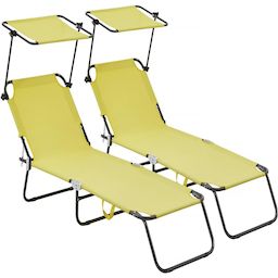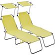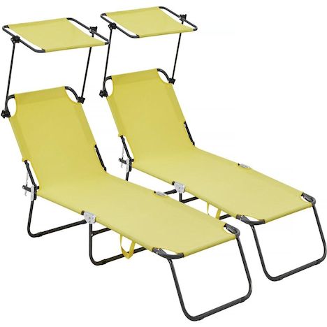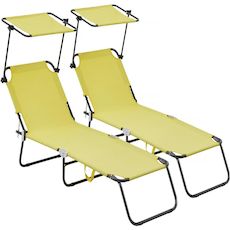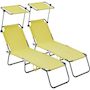 Lt de 2 bains de soleil pliable Lazy - Avec pare soleil - Jaune