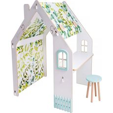 Maisonnette pour enfant en bois Bianelli avec bureau et tabouret - 114 x 93 x 120 cm - Blanc / Menthel - Fonction bureau et éclairage LED.