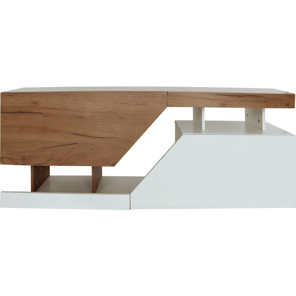 Meuble TV Ceelias - 160 x 35 x 46 cm.Meuble TV Ceelias - 160 x 35 x 46 cm - Blanc/Marron FoncéLe meuble TV se distingue par une structure géométrique intéressante qui, combinée aux couleurs utilisées, s'intègre parfaitement dans le caractère des intérieurs modernes et loft.Deux armoires que vou