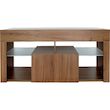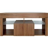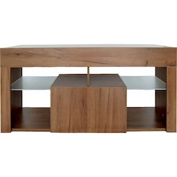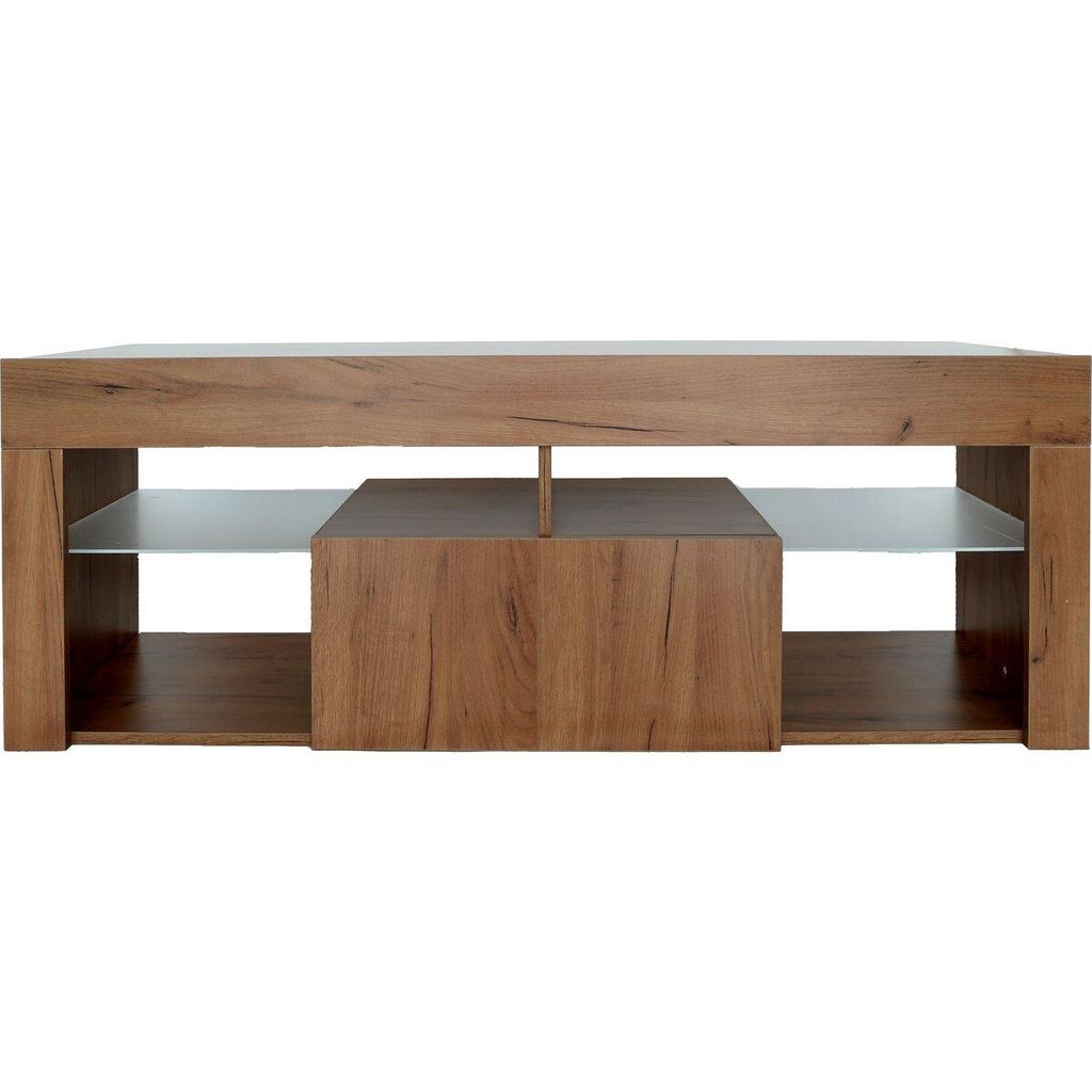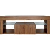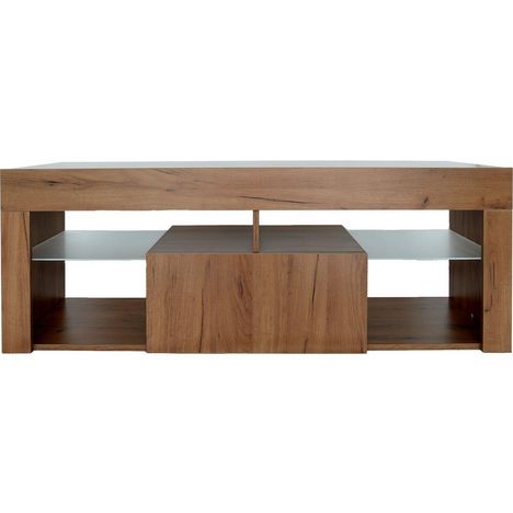 Meuble TV bois Hugo - 140 x 40 x 50 cm - 2 étagères en verre - Marron.