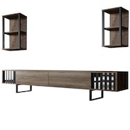 Meuble TV en bois Chrome Line - 180 x 30 x 48 cm - NoyerNoir – 4.0 étagères, 2.0 portes Conçu pour offrir praticité et robustesse, ce modèle s'intègre facilement dans tout intérieur et répond aux besoins du quotidien en garantissant confort d'usage. .Matières: Bois