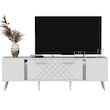 Meuble TV moderne - Dimensions : 150 x 35 x 48 cm - Bois - Epaisseur 18 mm - Blanc et argent.Meuble TV en bois Detas Donnez du caractère à votre décoration avec ce meuble tv pensé pour allier style et praticité. Son design soigné et ses finitions élégantes s'intègrent facilement dans une ambiance m