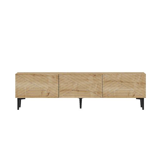 Meuble TV en bois Felix Donnez du caractère à votre décoration avec ce meuble tv pensé pour allier style et praticité. Son design soigné et ses finitions élégantes s'intègrent facilement dans une ambiance moderne, naturelle ou plus altique.Points fortsLook tendance pour sublimer votre intérieurFormat adapté aux espaces du quotidienIdéal pour le salon, la chambre ou l'entréeCaractéristiquesMatière : boisDimensions : 160 x 31,4 x 44,1 cmColoris : Chêne saphirDétails complémentaires3.0, 3.0, meuble TV avec piedsAstuce déco : associez-le à des matières naturelles (bois, textile, métal) pour un rendu harmonieux et chaleureux. Un choix parfait pour apporter une touche élégante sans surcharger la pièce.Meuble TV moderne en chêne saphir, 160 cm x 44,1 cm x 31,4 cm. Panneaux de particules 100 % mélaminés, épaisseur 18 mm. Design géométrique élégant, idéal pour le salon et les espaces multimédias. .Nombre de porte: 3