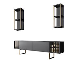 Meuble TV en bois Gold Line - 180 x 30 x 48 cm - AnthraciteNoir