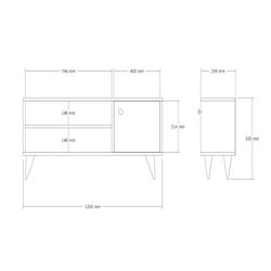 Meuble TV en bois Jena - 120 x 29 x 50 cm - Pin Atlantique – 2 étagères, 1 tiroir avec porte.