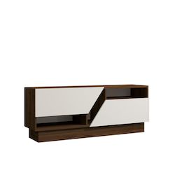 Meuble TV Koza Noyer Blanc Bois 40x160x45cm, Mélamine, Classique, Bas à poser, rectangulaire..